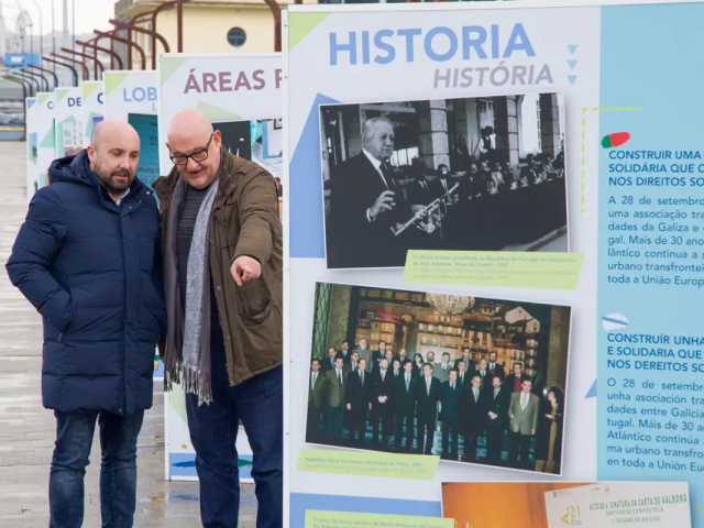 El concejal de Economía y Planificación Estratégica, José Manuel Lage, y el secretario general del Eixo Atlántico, Xoán Vázquez Mao, inauguraron la exposición.