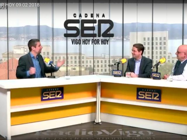 Alfredo García, Miguel R. Bugarín e Xoán Vázquez Mao analizan o cume ferroviario do Barco de Valdeorras en Radio Vigo