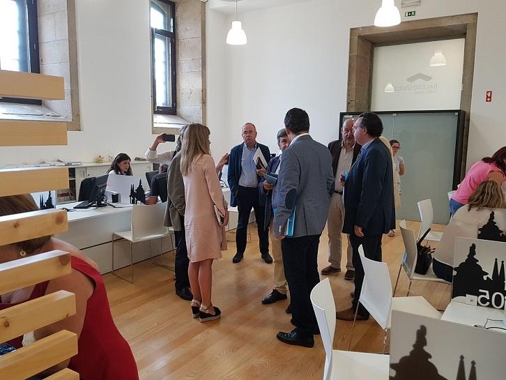 Sob a coordenação operativa de Xosé Sánchez Bugallo, na cidade de Braga reuniram o presidente de Riveira, Manuel Ruiz Rivas; Natalia Balseiro, representante da alcaldía de A Coruña, o presidente da Diputación de Lugo, Darío Campos; e Pablo Rivera, diretor executivo da AECT Eurocidade Chaves Verín, junto com o secretário-geral do Eixo Atlântico, Xoán Vázquez Mao, e o presidente da Câmara municipal de Braga, Ricardo Rio, para conhecer e analisar a Loja de Cidadão, programa em que se baseará a implementação nas citadas cidades galegas do Gabinete do cidadão, um projeto no qual Braga apoiará conforme a prioridade estratégica “Construir a cidade do Futuro” definida no Plano de Ação da Agenda Urbana.